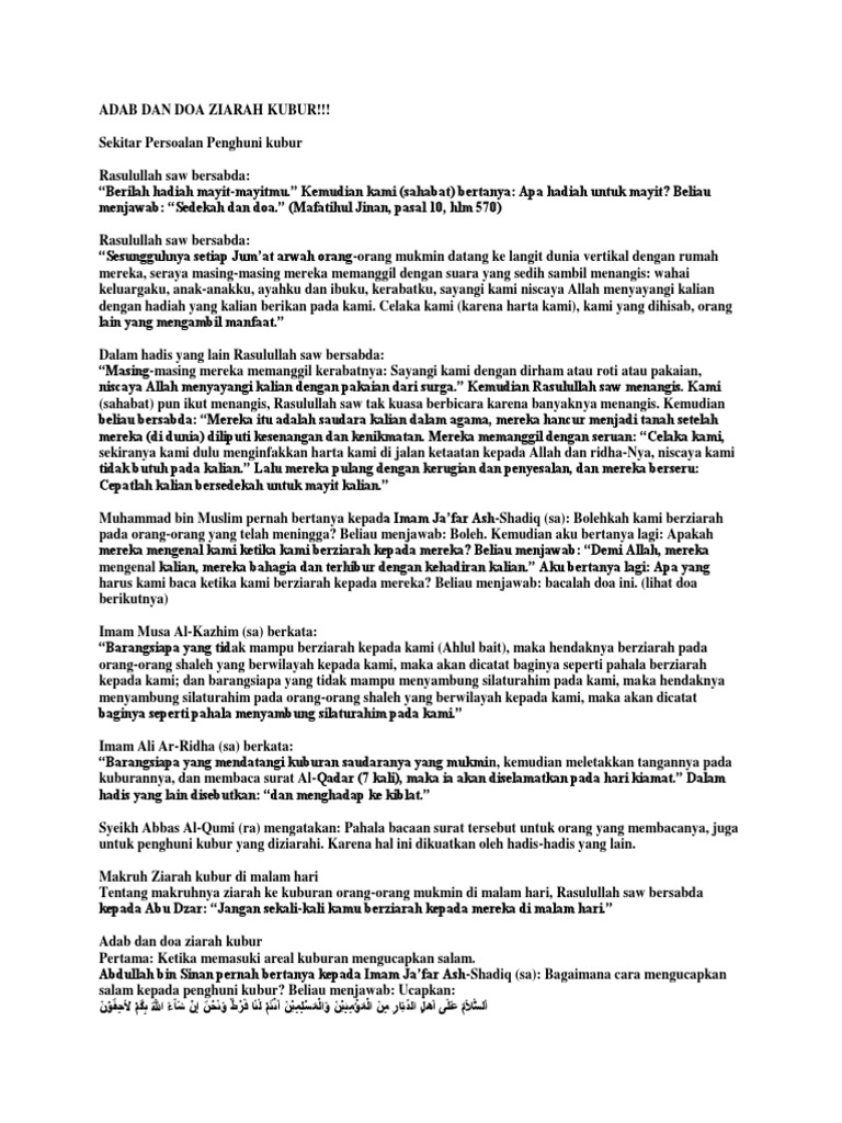 Doc Adab Dan Doa Ziarah Kubur Rdw Fauz Academia Edu